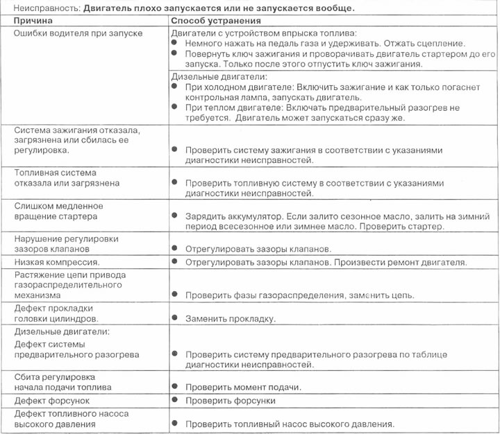 Если двигатель не запускается, следует производить системный поиск неисправности. Препятствием для запуска двигателя на бензиновых двигателях могут быть две причины: Воздушно-топливная смесь должна попадать в цилиндры и между электродами свечей должна проскакивать искра.