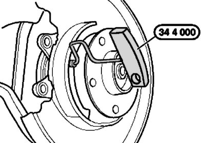 3. Поверните штифты при помощи специального приспособления № 34 4 000 на угол 90° и выньте их. Снимите тормозные колодки.