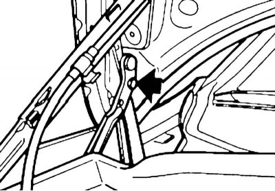 2. Зафиксируйте капот в крайнем верхнем положении. Для этого отсоедините от него демпфер, полностью откройте капот и закрепите его болтами слева и справа.