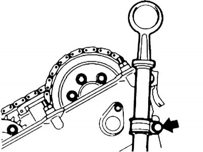 5. Снимите направляющую щупа уровня двигательного масла от правой крышки цепи ГРМ.