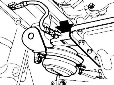 16. Отсоедините балку переднего моста от опоры двигателя и опустите примерно на 60 мм (см. Главу Подвеска и рулевое управление).