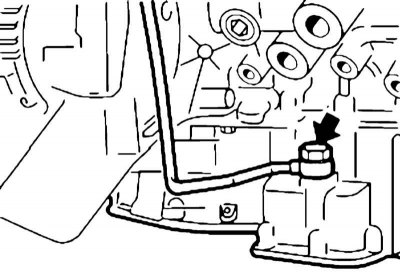13. Отсоедините от поддона картера возвратную трубку.
