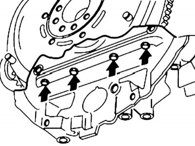 18. Выверните болты крепления верхней секции поддона картера со стороны трансмиссии.