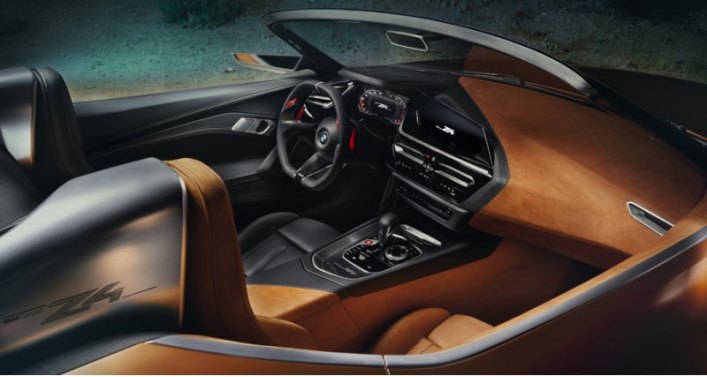 Мы можем оценить формы грядущего новичка, которому дизайнеры подарили хищные фары, решетку с «висящими в воздухе» мелкими декоративными элементами, узкие фонари-лезвия, контрастные колпаки позади спинок кресел и двухцветные 20-дюймовые колесные диски. Шоу-кар представлен в открытом состоянии. Впрочем, по прототипам известно: серийная «зетка» получит тканевый складной верх вместо жесткой трансформируемой крыши предшественника, то есть вернется к идее Z4 поколения E85 2003 года.
